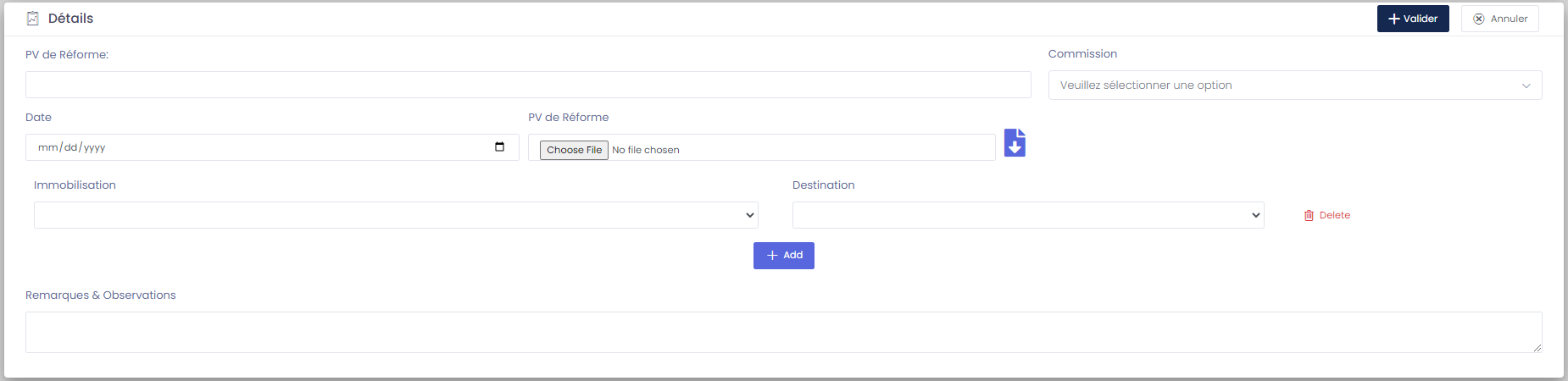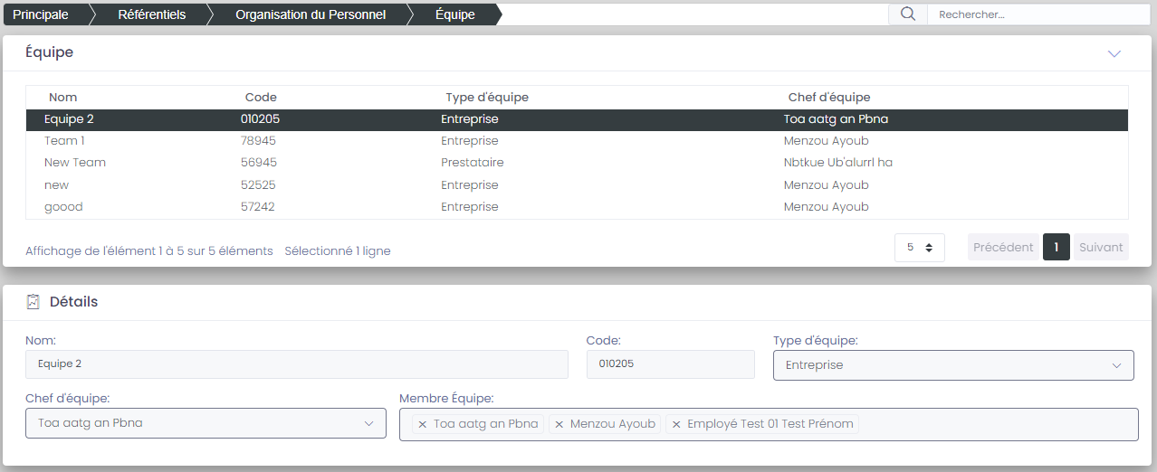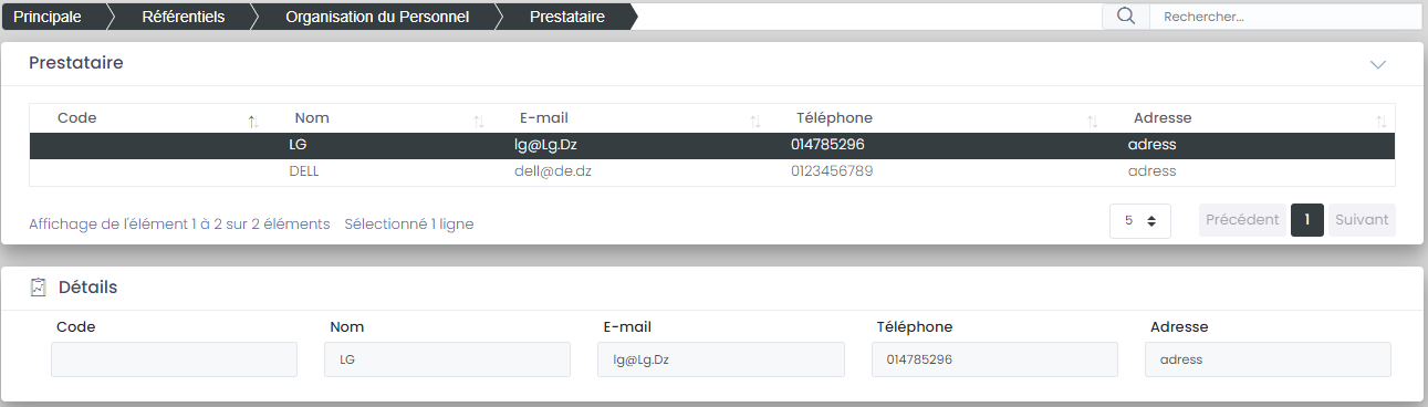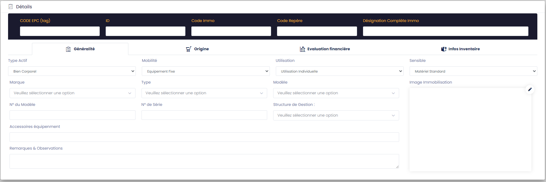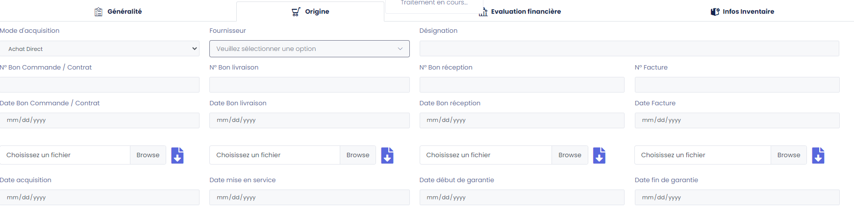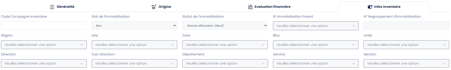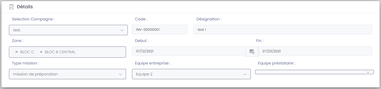 - Equipe préstataire: Equipe prestataire qui va effectuer l'inventaire.