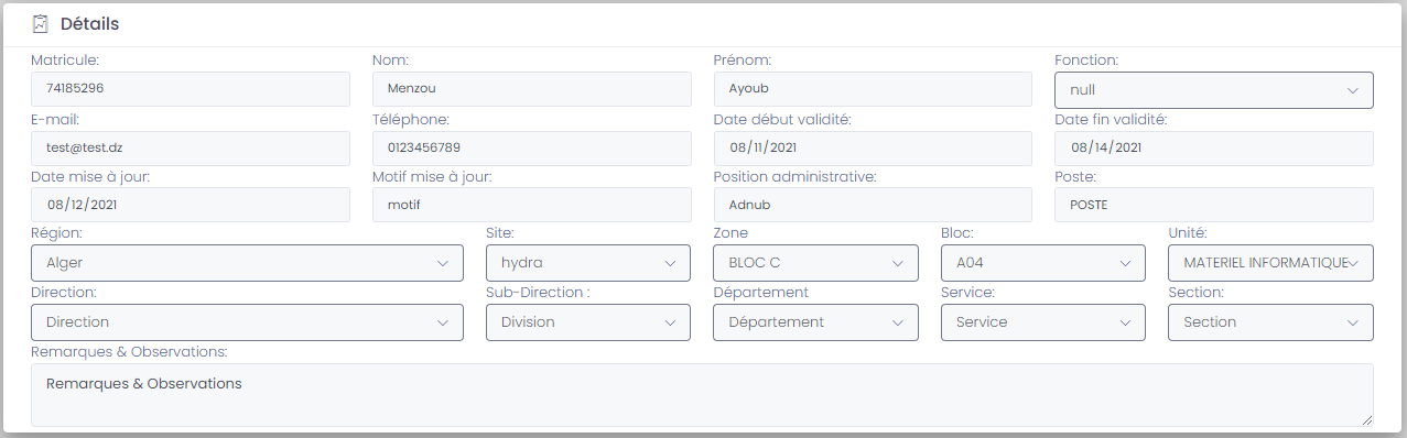 - Début: Date début de la mission.