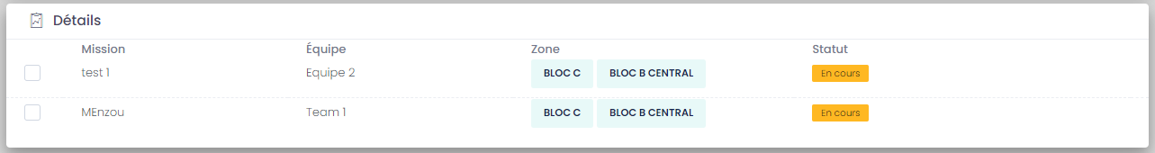 - Code : Code unique pour la mission.