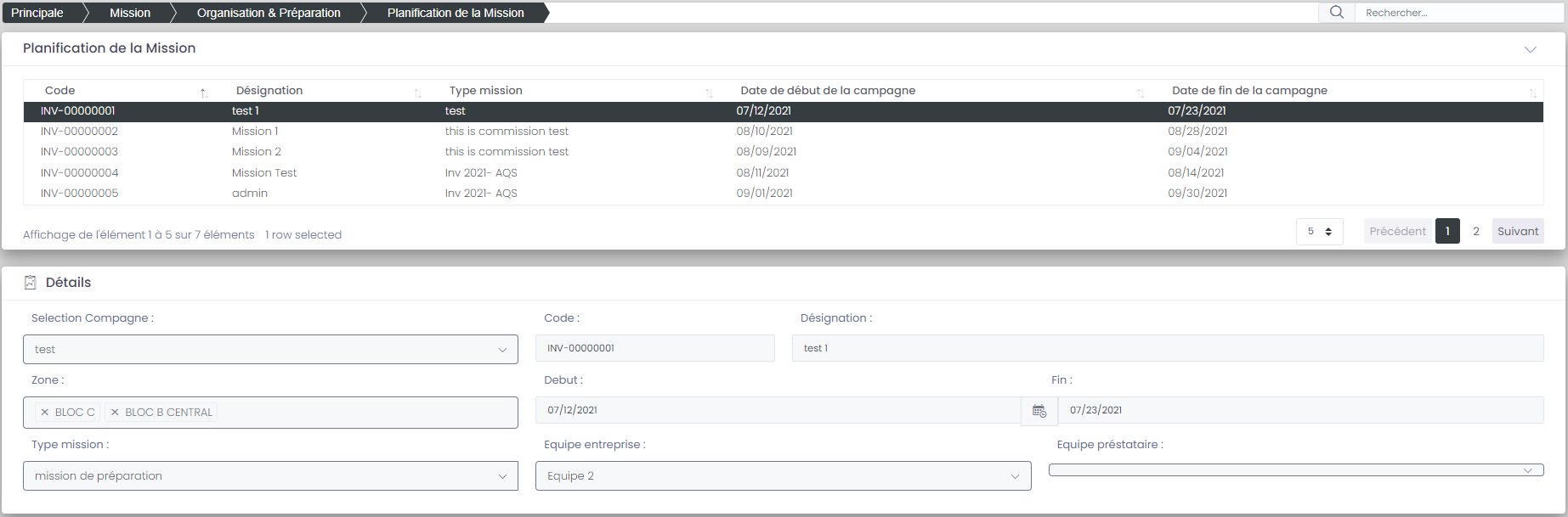 La planification de la mission sert a affecter les équipes d'inventaires au compagnes d'inventaire, et suivre l'avancement de chaque équipe, et l'avancement globale de l'inventaire,