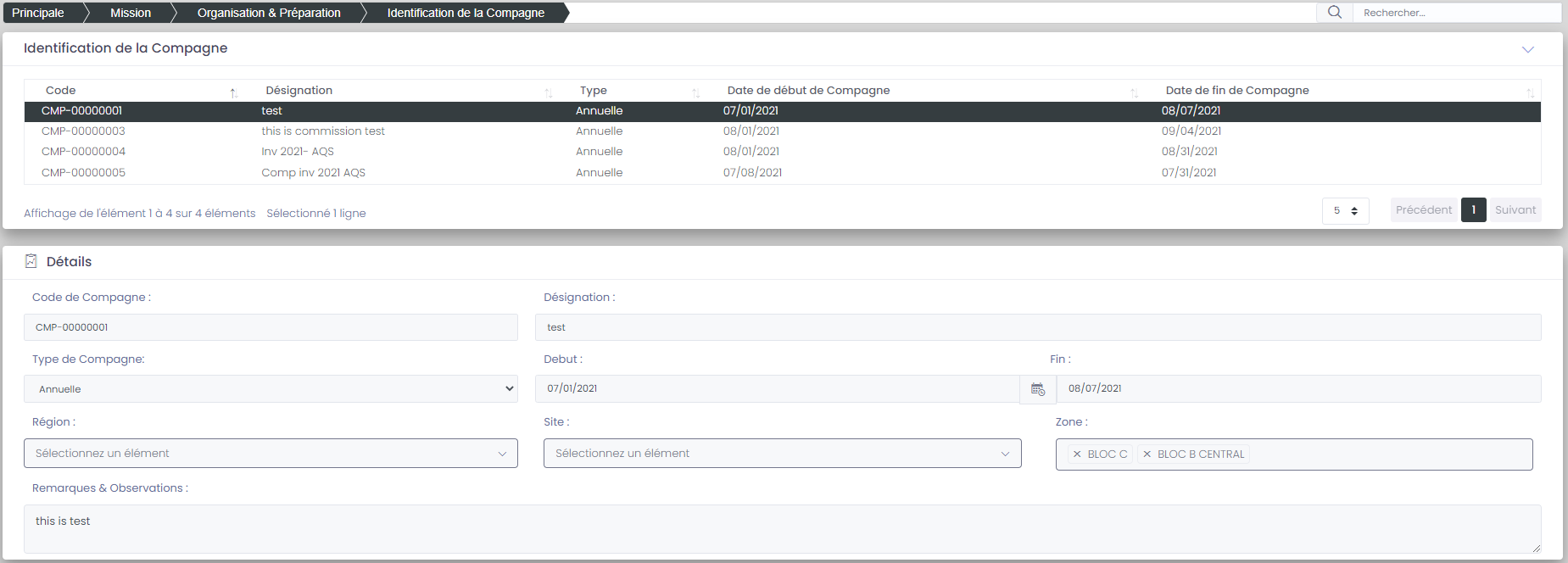 L'identification de la campagne sert a rentrer les informations et les détails de la mission d'inventaire,