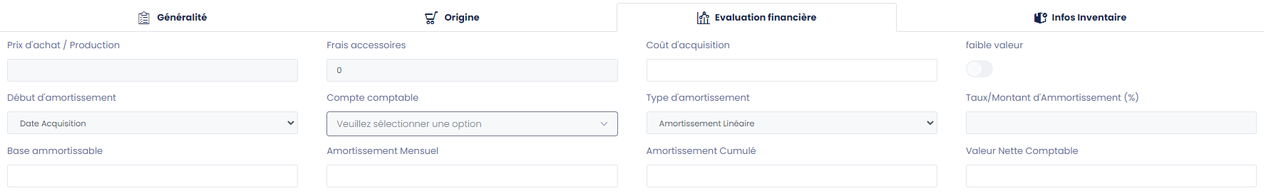 Pour ajouter une compagne d'inventaire, le formulaure contient: