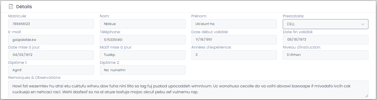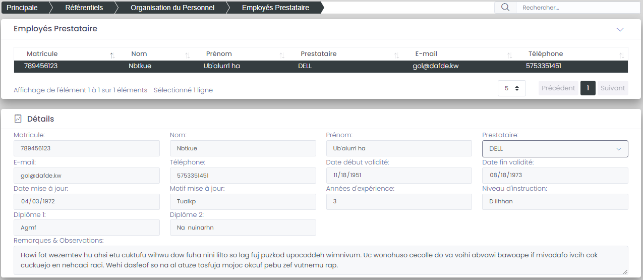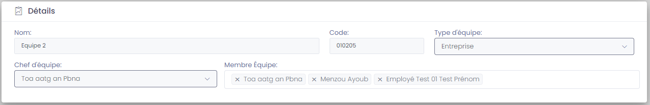 - Equipe préstataire: Equipe prestataire qui va effectuer l'inventaire.