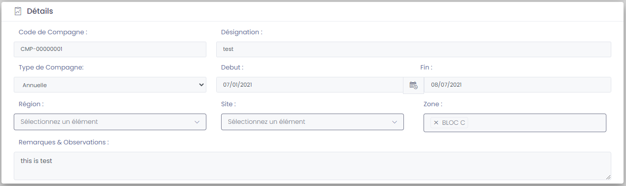 - Zone: La zone ou cette compagne va être exécutée.